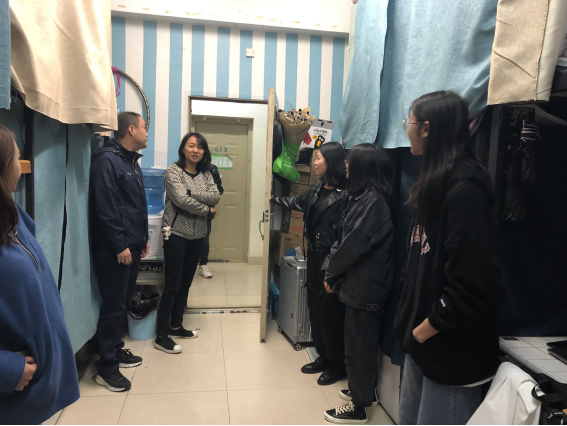 本次走访的重点是安全知识宣传及宿舍内务卫生检查。老师们就当前出现的诸如诈骗、外出安全、用水用电等老员工安全方面工作开展宣传教育。员工宿舍内,气氛融洽。老师们在与同学的交流中了解了同学们的生活现状,并对同学们所遇到的问题及困难,作了认真记录并提了一些建议和反馈。拉近了老师们与员工们的距离。